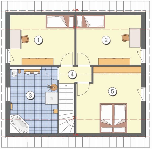 Zudem gibt es nicht nur im Dachgeschoss ein geräumiges Badezimmer, sondern auch im Erdgeschoss ein WC mit zusätzlicher Dusche. So können auch mehrere Fa-milienmitglieder gleichzeitig aufstehen und den Tag gemütlich beginnen.