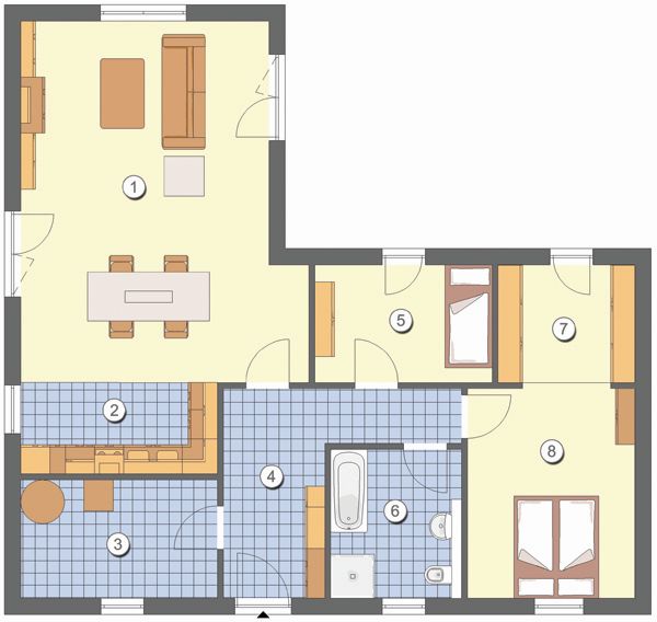Elegantes Wohnen auf einer Etage bietet Ihnen der Eckbungalow Comfort 108. Bereits von außen zeigt sich das Comfort 108 von seiner geschmackvollen Seite. Durch seine Eckbauweise lässt sich dort ganz einfach eine wind-geschützte Terrasse anlegen, wo Sie auch in der kälteren Jahreszeit jeden Sonnenstrahl genießen können.